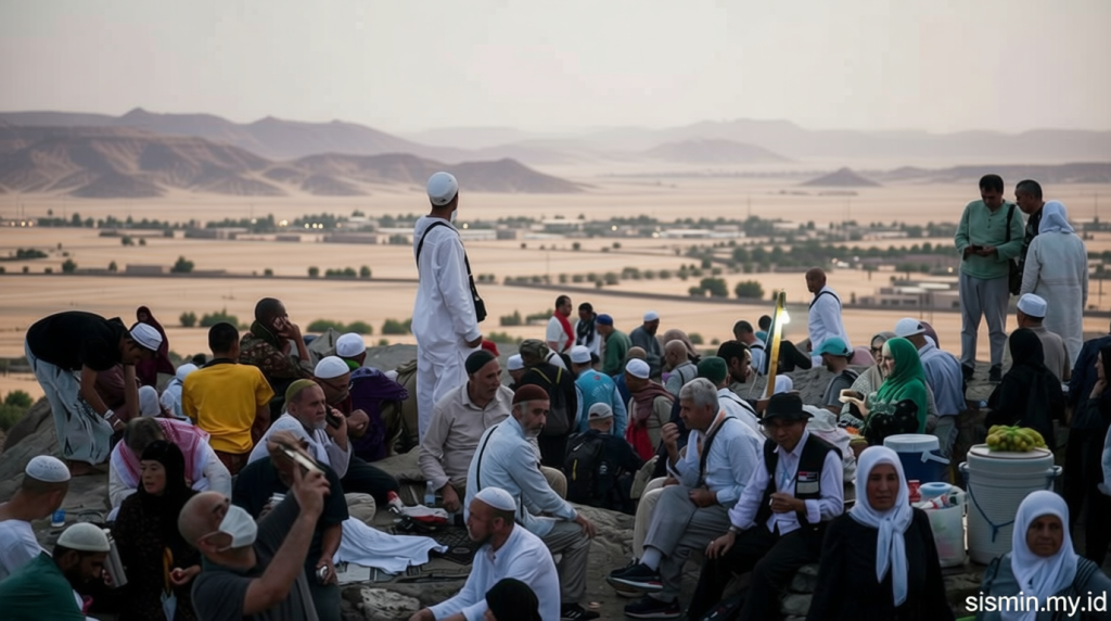 Dalam perjalanan menuju Padang Arafah, Jabal Rahmah yang tingginya 70 meter menjadi tempat pertemuan Nabi Adam dan Siti Hawa. Dinamai “Bukit Kasih Sayang,” gunung ini menggambarkan kisah cinta dan pengampunan yang menjadi bagian dari sejarah awal manusia. Di puncaknya terdapat tugu putih yang menandai pertemuan dua ciptaan pertama Allah SWT. Lokasi ini paling ramai pada tanggal 9 Dzulhijjah, saat jemaah Haji melakukan wukuf di Arafah.