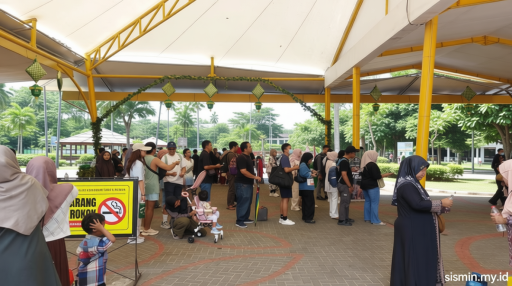 Detikcom mengamati di lokasi tersebut pada hari Sabtu, 4 April 2026, di mana antrean terlihat di pintu utama. Beberapa pengunjung berada di loket pembelian tiket, sementara yang lain menggunakan mesin penjualan tiket yang tersedia.