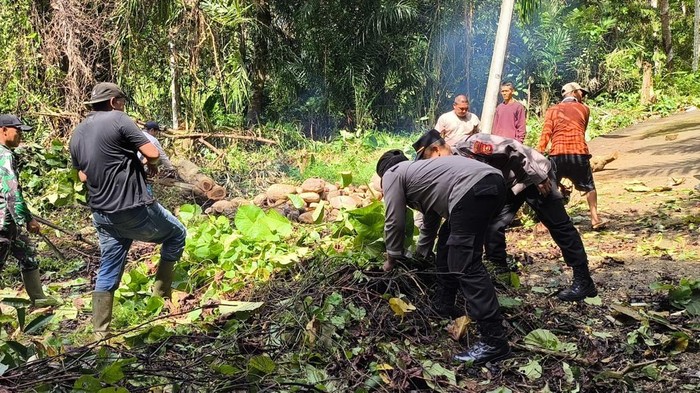 Petugas gabungan bersama masyarakat melaksanakan kegiatan pembersihan di sekitar jembatan. Selain itu, tim juga melakukan pemangkasan pohon besar yang berpotensi mengganggu keamanan pengguna jalan.