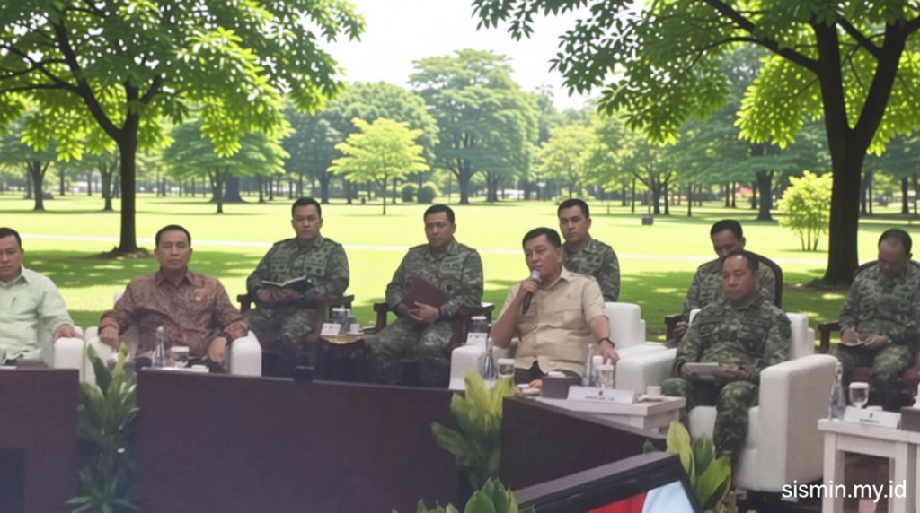 Kementerian Pertahanan (Kemhan) menjadi tempat pertemuan Menteri Pertahanan Sjafrie Sjamsoeddin dengan sejumlah purnawirawan Tentara Nasional Indonesia (TNI). Kegiatan ini berlangsung di Gedung Kemhan, Jakarta Pusat, pada Jumat (24/4/2026), dan dihadiri oleh beberapa komandan utama TNI, termasuk Panglima TNI Jenderal Agus Subiyanto, Kepala Staf Angkatan Laut (KSAL) Laksamana Muhammad Ali, serta Kepala Staf Angkatan Darat (KSAD) Jenderal Maruli Simanjuntak.