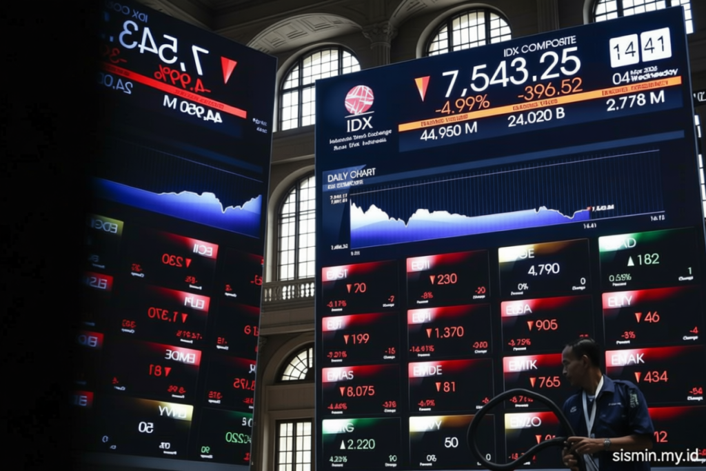Jakarta – Indeks Harga Saham Gabungan (IHSG) Bursa Efek Indonesia (BEI) pada hari Senin, berakhir turun akibat kegiatan ambil untung oleh para investor. Fenomena ini terjadi sambil menunggu hasil pertemuan Rapat Dewan Gubernur (RDG) Bank Indonesia (BI) yang akan digelar pekan ini. IHSG menutup dengan penurunan 39,89 poin atau 0,52 persen, mencapai level 7.594,11. Sementara itu, indeks LQ45, yang mencakup 45 saham unggulan, juga mengalami penurunan 3,02 poin atau 0,40 persen, ke 755,85.