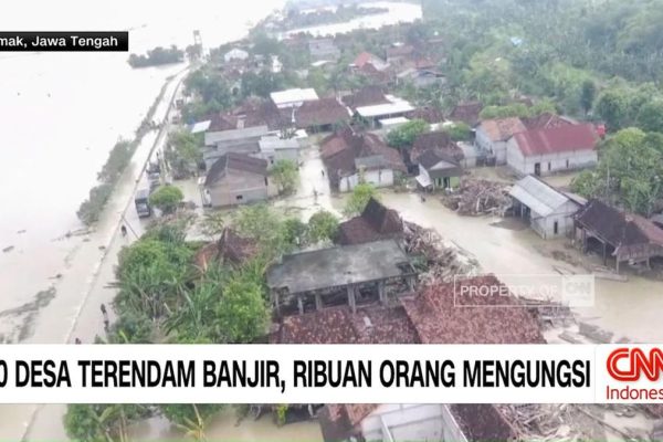 VIDEO: 10 Desa Terendam Banjir, Ribuan Orang Mengungsi Kondisi Pasca-Banjir di Demak Tiga hari setelah tanggul Sungai Tuntang di Demak, Jawa Tengah, pecah, beberapa area…