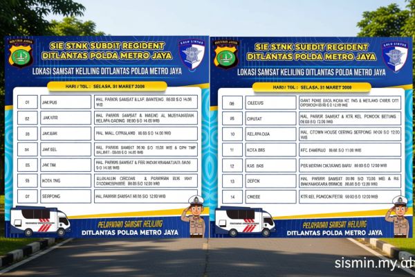 Rabu, SIM Keliling Tersedia di Lima Lokasi Jakarta Ditlantas Polda Metro Jaya menawarkan layanan SIM (Surat Izin Mengemudi) Keliling pada Rabu di lima titik strategis…