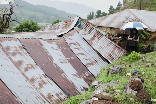 Malapetaka Baru Hantam Pakistan-Afghanistan, Korban Jiwa Berjatuhan Seorang individu berjalan di atas atap rumah yang hancur akibat hujan deras di Abbottabad, Khyber Pakhtunkhwa, Pakistan, Senin…