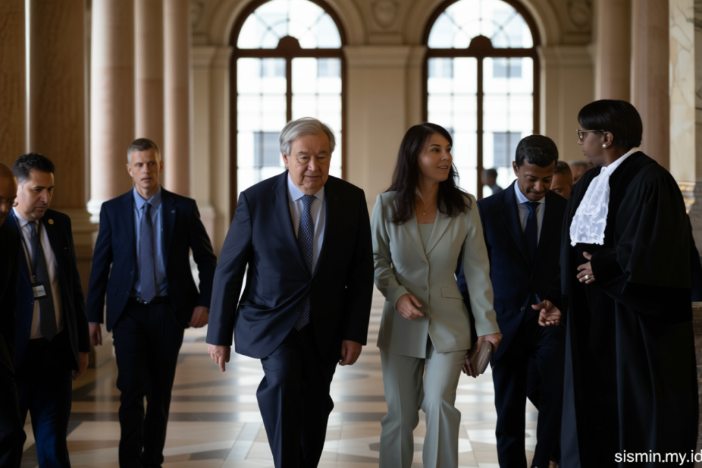 Di Den Haag, Belanda, pada Jumat (17/4), Sekretaris Jenderal PBB Antonio Guterres menekankan pentingnya sistem hukum internasional dalam menentukan arah masa depan. Ia mengajak masyarakat global untuk menyerahkan keputusan kepada prinsip supremasi hukum, bukan kebijakan sewenang-wenang.