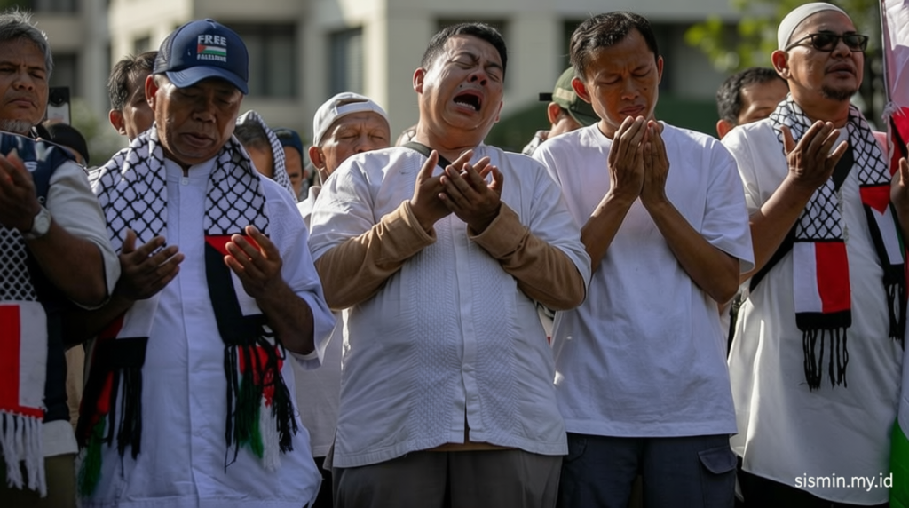 Di depan Kedutaan Besar Amerika Serikat Jakarta, warga mengadakan upacara doa bersama pada hari Minggu (5/4) pagi. Aksi ini dilakukan sebagai bentuk dukungan dan kepedulian terhadap tiga prajurit TNI yang meninggal dalam peristiwa di Lebanon.