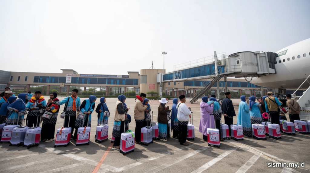 Pemandangan di Bandara Sultan Mahmud Badhriyah tampak lenggang namun penuh makna, dengan para keluarga memberikan pelukan dan salam perpisahan sebelum para jemaah menyusuri jalur ke embarkasi. Beberapa di antara mereka tak menyembunyikan rasa haru, sementara yang lain bersemangat mempersiapkan tugas ibadah.