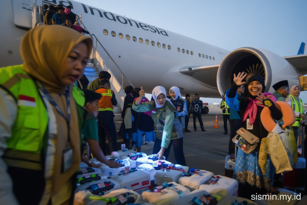 Tim petugas memberikan perhatian khusus kepada jamaah lansia yang akan berangkat. Bantuan diberikan untuk memastikan mereka siap dan nyaman sebelum memasuki pesawat, khususnya di Bandara Internasional Minangkabau (BIM).