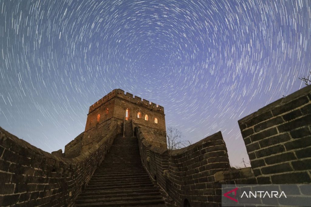 Di Kota Chengde, Provinsi Hebei, China utara, bagian Jinshanling dari Tembok Besar China menjadi latar yang menarik untuk mengabadikan langit yang bercahaya pada Rabu, 15 April 2026.