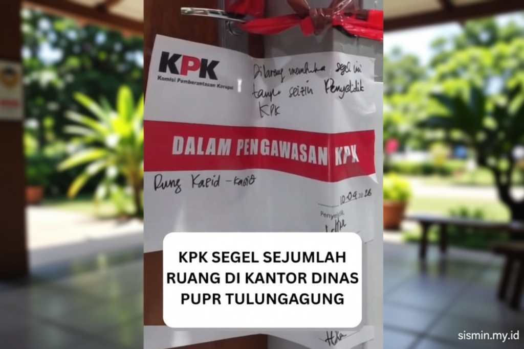 Tulungagung, Jawa Timur (ANTARA) – Setelah operasi tangkap tangan (OTT) terhadap Bupati Tulungagung Gatut Sunu Wibowo, Komisi Pemberantasan Korupsi (KPK) melakukan penyegelan beberapa ruang di gedung Dinas Pekerjaan Umum dan Penataan Ruang (PUPR) setempat, Jumat (10/4) malam. Video berdurasi 37 detik yang menampilkan ruangan-ruangan dinas yang digembok dan bersegel merah dengan tulisan “dalam pengawasan KPK” beredar di media sosial Instagram melalui akun @Tulungagung Eksis.