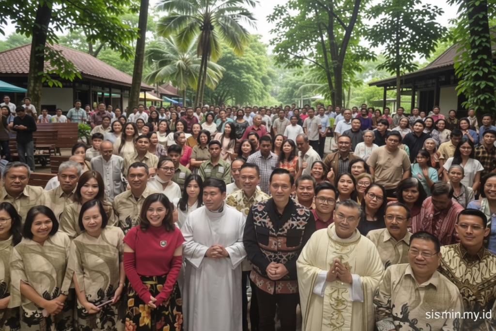 Bekasi – Menteri Koordinator Bidang Infrastruktur dan Pembangunan Kewilayahan, Agus Harimurti Yudhoyono (AHY), menghadiri ibadah malam Paskah di Gereja Katolik Paroki Kalvari Lubang Buaya, Pondok Gede, Kota Bekasi, Jawa Barat. Acara tersebut dihadiri ratusan jemaat yang berpartisipasi dalam perayaan suci. AHY menyempatkan diri berinteraksi dengan umat dan para pastor, seperti Pastur Yohanes Ferdinand serta Pastur Wilson, serta mengapresiasi upaya gereja dalam menjaga keharmonisan masyarakat.