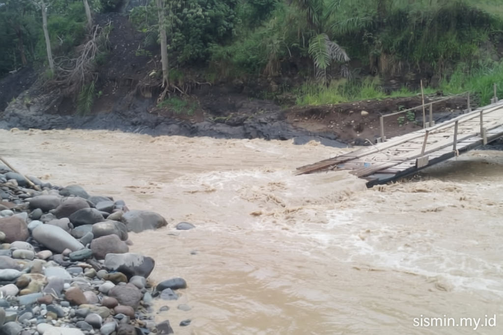 “Terputusnya tiga jembatan menyebabkan terisolasinya beberapa kampung,” ujar Andalika.