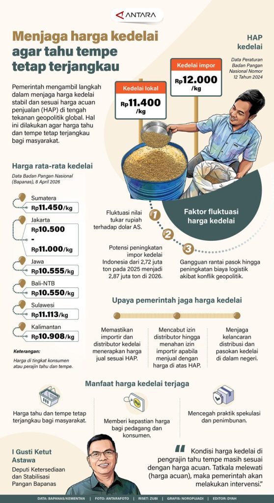 Pemerintah berupaya mempertahankan harga kedelai tetap stabil di tengah tantangan tekanan politik internasional. Upaya ini bertujuan memastikan biaya produksi tahu dan tempe tidak meningkat secara signifikan, sehingga tetap bisa diakses oleh masyarakat secara mudah.