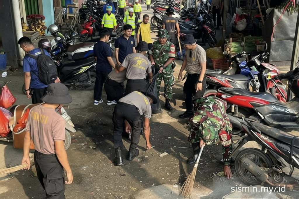 “Aktivitas ini menitikberatkan pada pembersihan fasilitas umum, saluran air, dan area pasar sekitar agar mengurangi genangan air dan memberikan kenyamanan bagi warga,” kata Kombes Pol Henik Maryanto, Komandan Satuan Brimob Polda Metro Jaya.