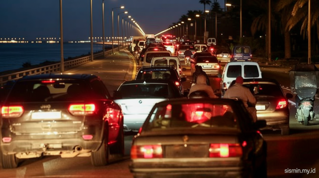 Pada malam Jumat (17/4/2026), jalan raya di Sidon, Lebanon, dipenuhi kendaraan yang mengalir deras. Pemandangan ini menunjukkan warga Lebanon yang kembali ke rumah setelah gencatan senjata selama 10 hari antara negara tersebut dan Israel mulai berlaku. (REUTERS/Aziz Taher) Beberapa orang yang terlunta-lunta membawa barang-barang mereka, yang tergantung di atap mobil, mencerminkan kebahagiaan dan kelelahan setelah lama terpisah dari kamp pengungsian.